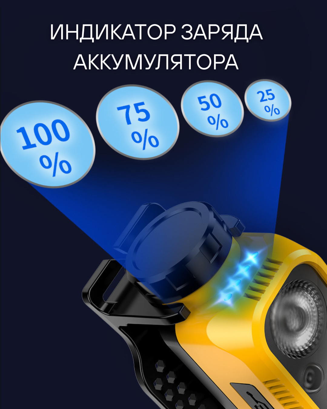 Особенности: индикатор уровня заряда, ремешок, разъем USB Type-C, датчик движения, стробоскоп